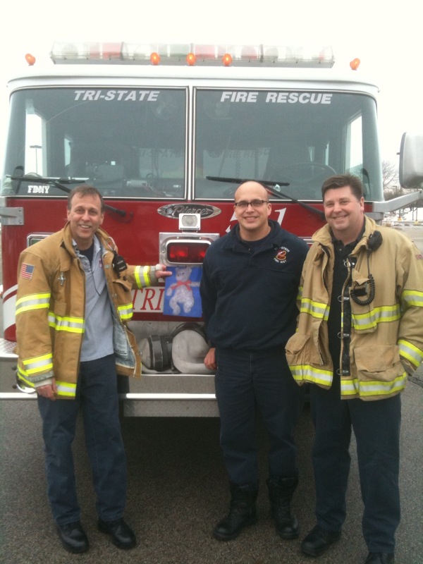 When it was time to leave, the firefighters invited us back to their firehouse.  When we arrived, they had some surprises for us to send to you. They hope you like it.