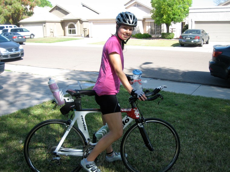 When we got back to Phoenix, Teddy and I went on a bike ride together. We talked about how it is important to wear a helmet to stay safe on the bike and Teddy had a special blue helmet to wear.