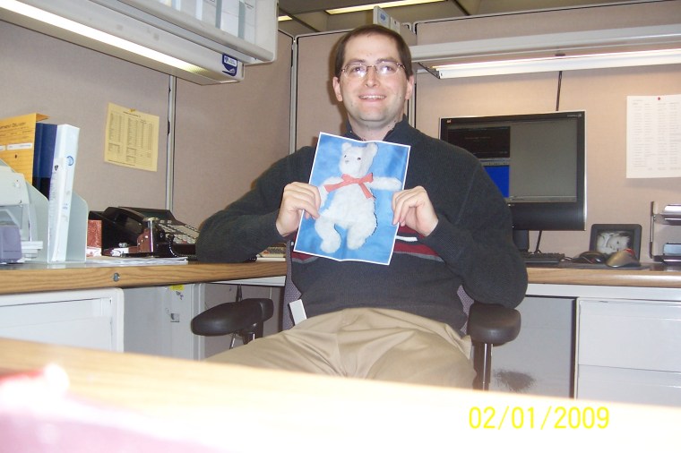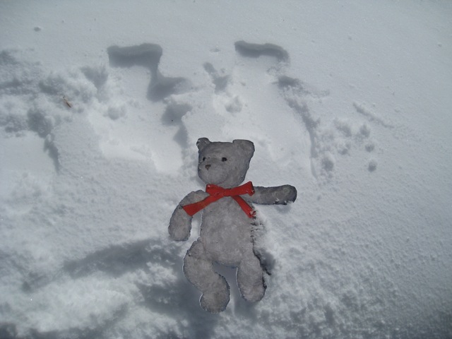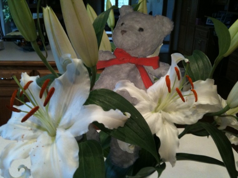 Fed-Ex delivered Tidy Teddy to my home through first class mail. He said that he enjoyed the experience of riding in the box and that it was very cozy and peaceful inside it. In this picture, he has just arrived at my house.