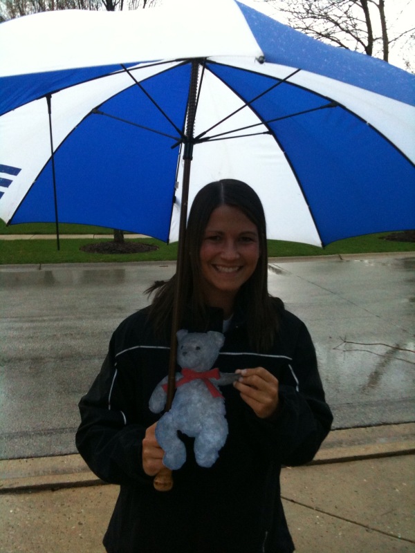 Tidy Teddy went to the park, during the short time of nice weather, and met Red, the M&M. They played catch with a football and had a fun time. Tidy Teddy was so excited he got to spend time with Red and was glad he had the chance to exercise. Red even let Tidy Teddy take a picture with him!