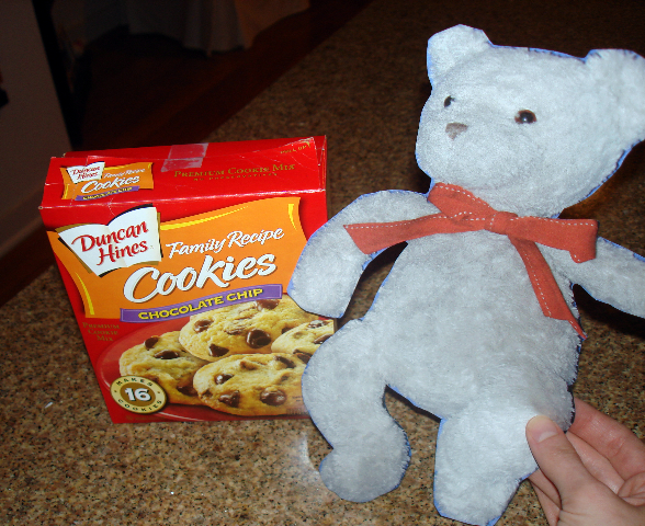 Tidy Teddy bought a lovely box of Duncan Hines cookie mix from the grocery store. He began by reading the directions on the back of the box.